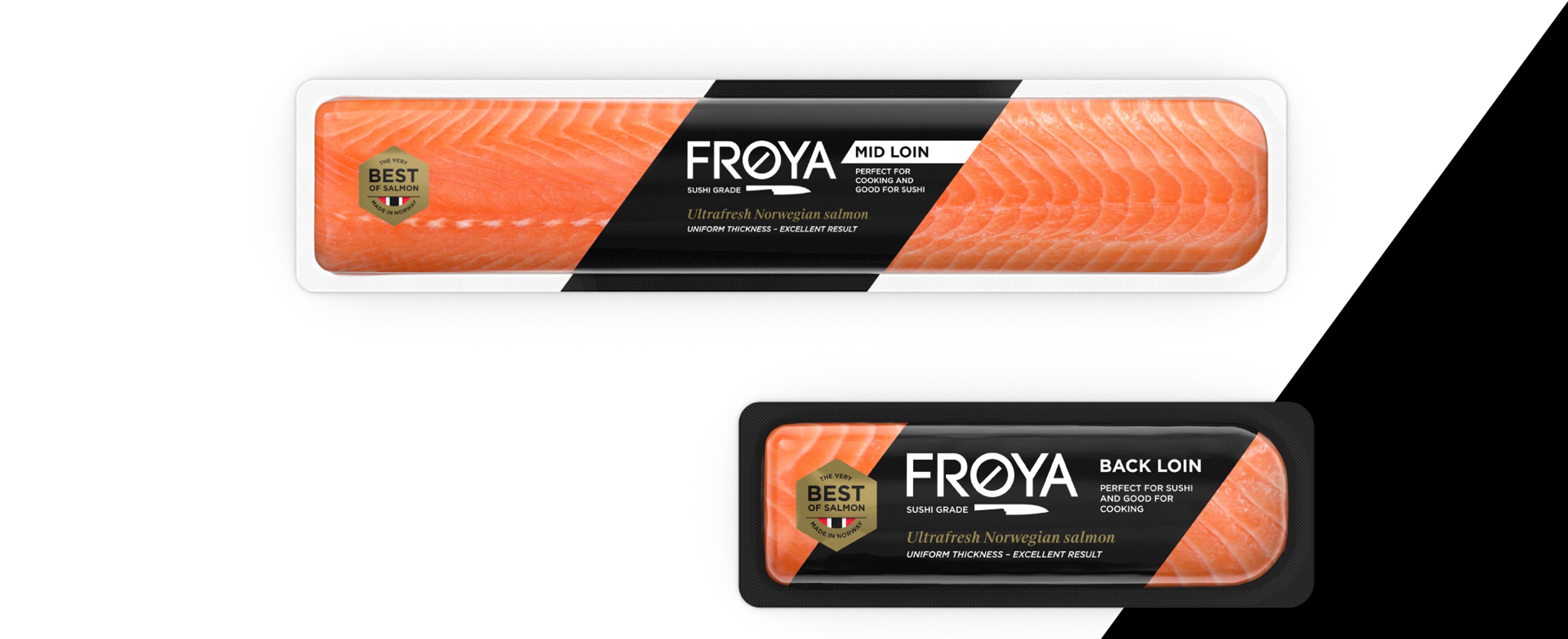 Frøya merkevaren ble etablert i 2010 som høykvalitets alternativ til annen norsk lakseloin. Frøya selger i dag over 1000 tonn ultraferske lakseloins til forbrukere i norden, Europa og enkelte land i Asia. Grid har vært Frøyas merkevarebyrå siden 2016 og er ansvarlig for helhetlig kreativt konsept og branding.