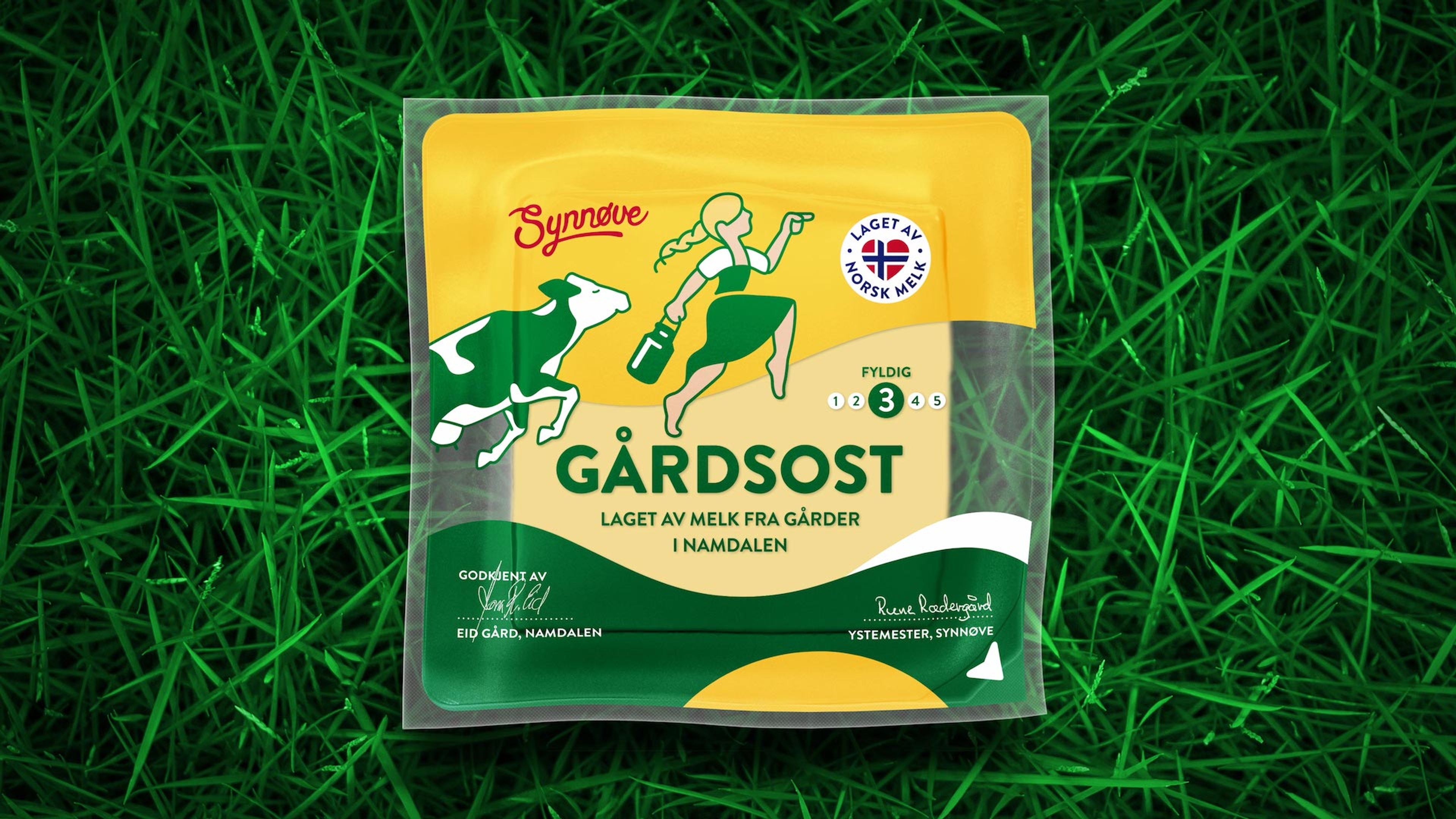 Synnøves serie av gule oster er revitalisert i sin helhet. Synnøve er ung, innovativ og leken. Som merkemaskot har hun en sentral rolle i brandingen. Hun opptrer i ulike positurer som en integrert del av designet.