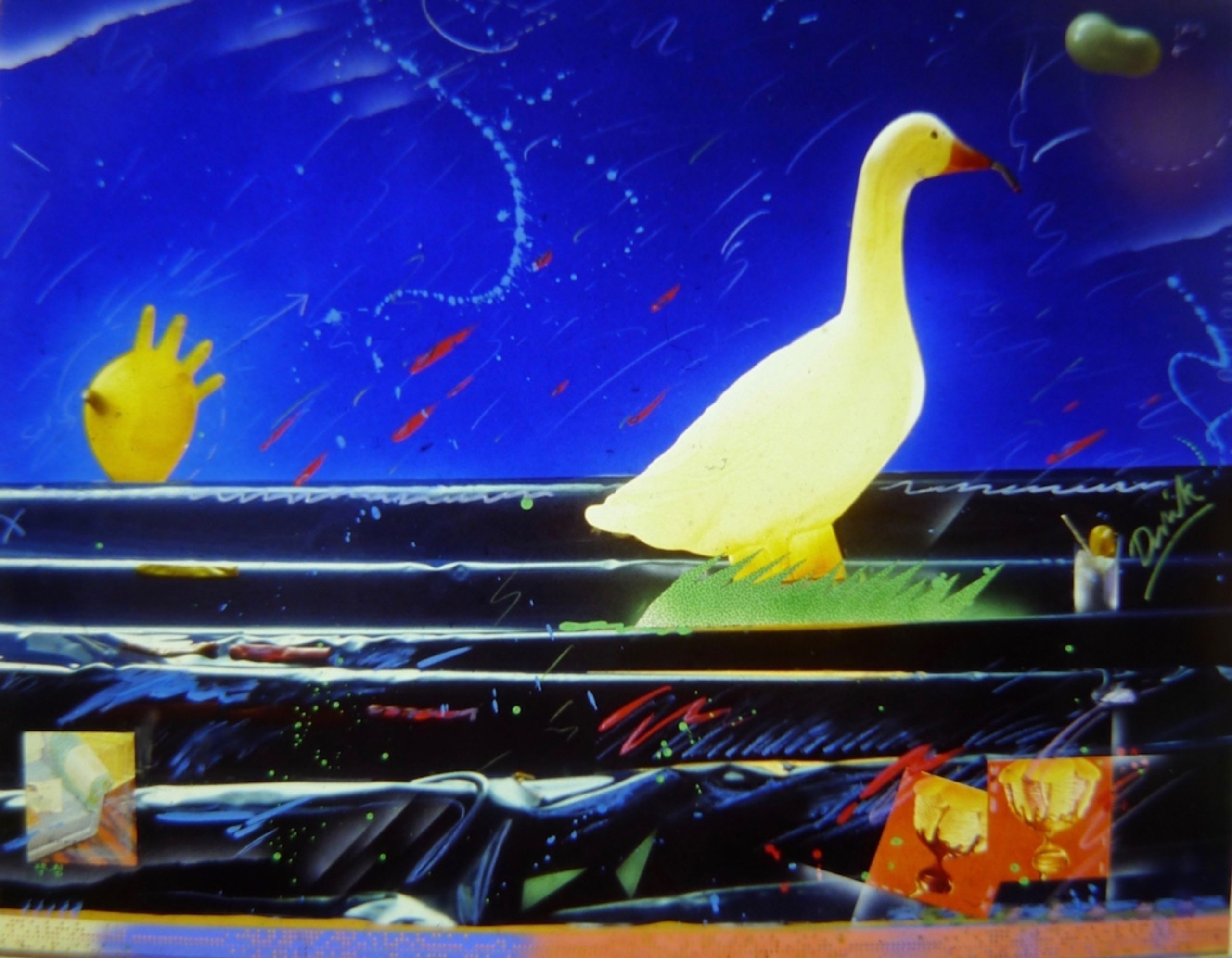 Art Aid i blandingsteknikker. Plakater til Gåsøyfestivalen 1983.