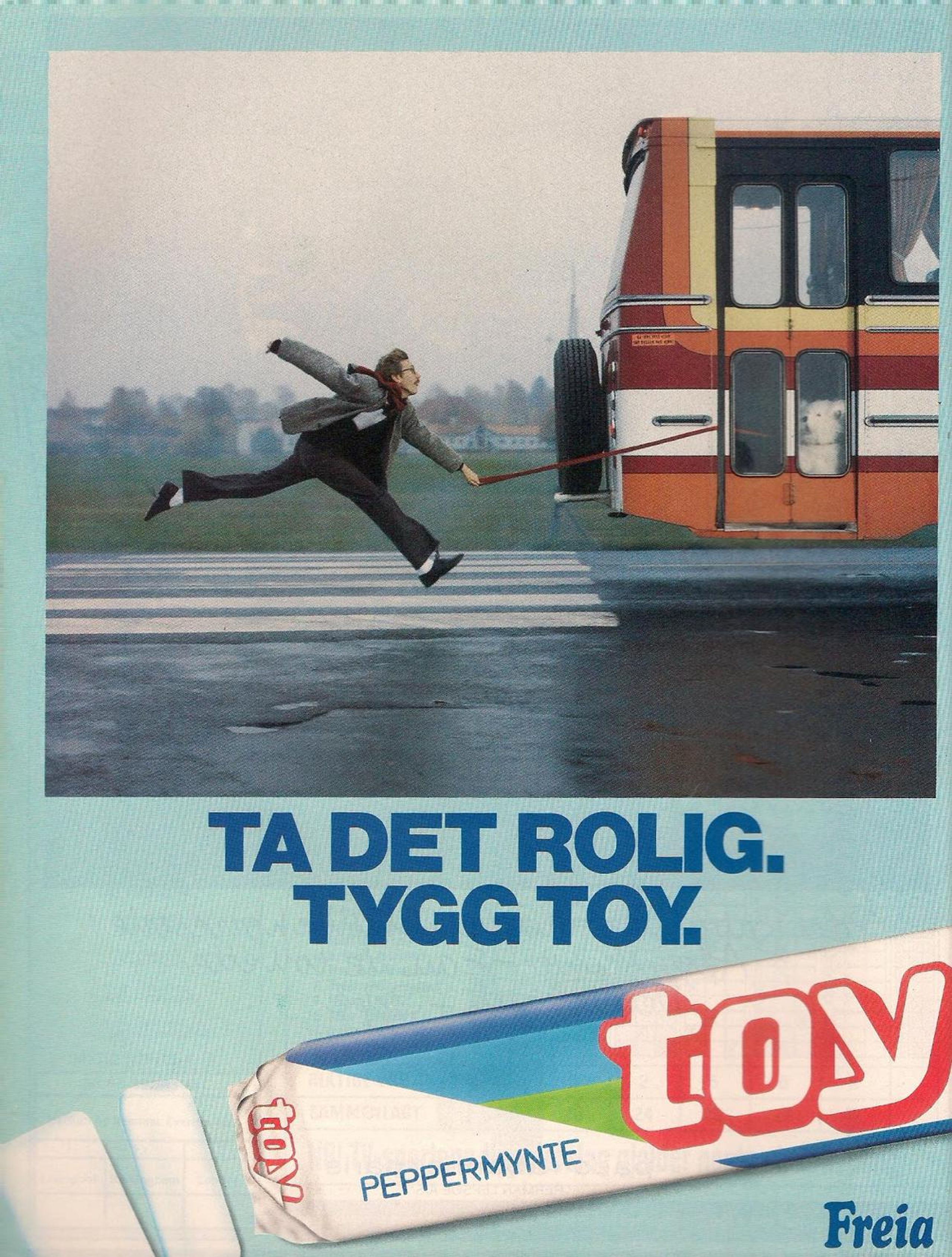 Ali kaffe kurerer gruff. Ta det rolig. Tygg Toy. Tiger på tanken. Lano for liten, og Lano for stor. Tiden går, Gjensidige…